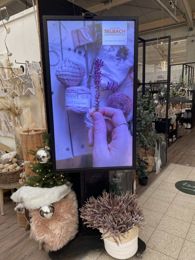 Ob Abstimmungen wie „Veilchen oder Primel?“ oder kleine digitale Spiele – Kunden werden aktiv eingebunden und können direkt Einfluss nehmen. In einer Bremer Mall entschieden Besucher per interaktiver Umfrage, welches Blumenangebot zwei Wochen später im Geschäft verfügbar sein sollte. Die Teilnahme erfolgte intuitiv über ein Kamerasystem, das die Bewegungen der Kunden links oder rechts am Monitor erfasste.